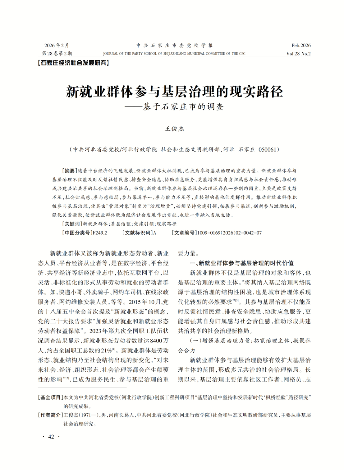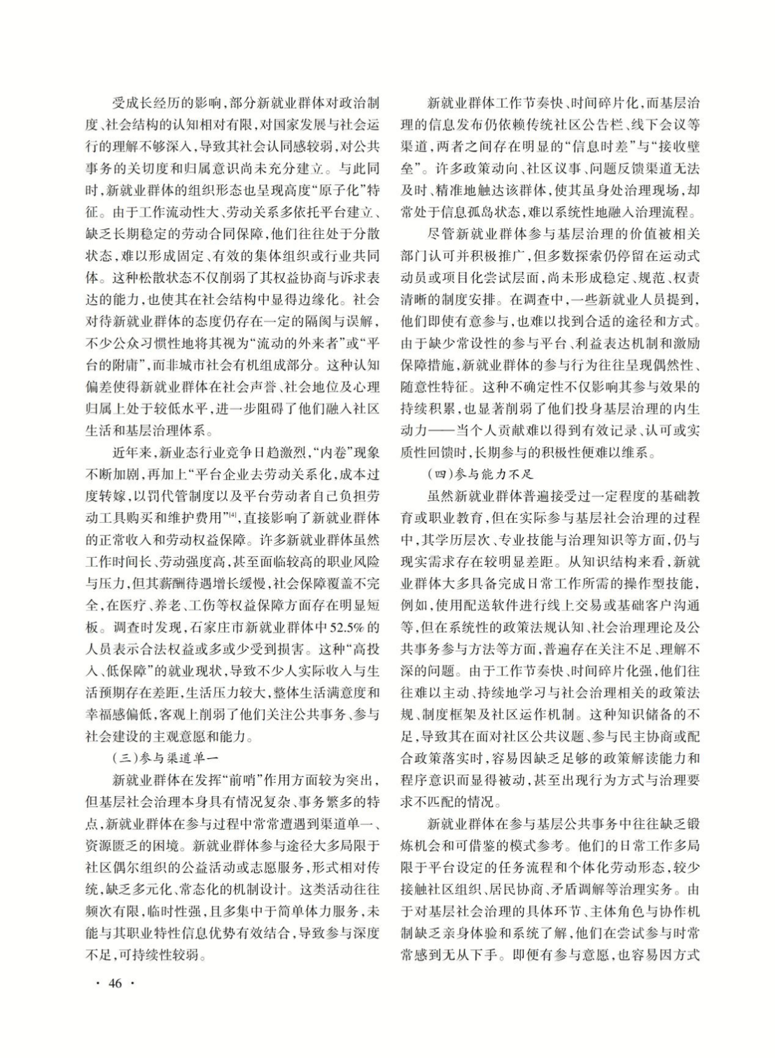 就业群体参与基层治理的现实路径——基于石家庄市的调查