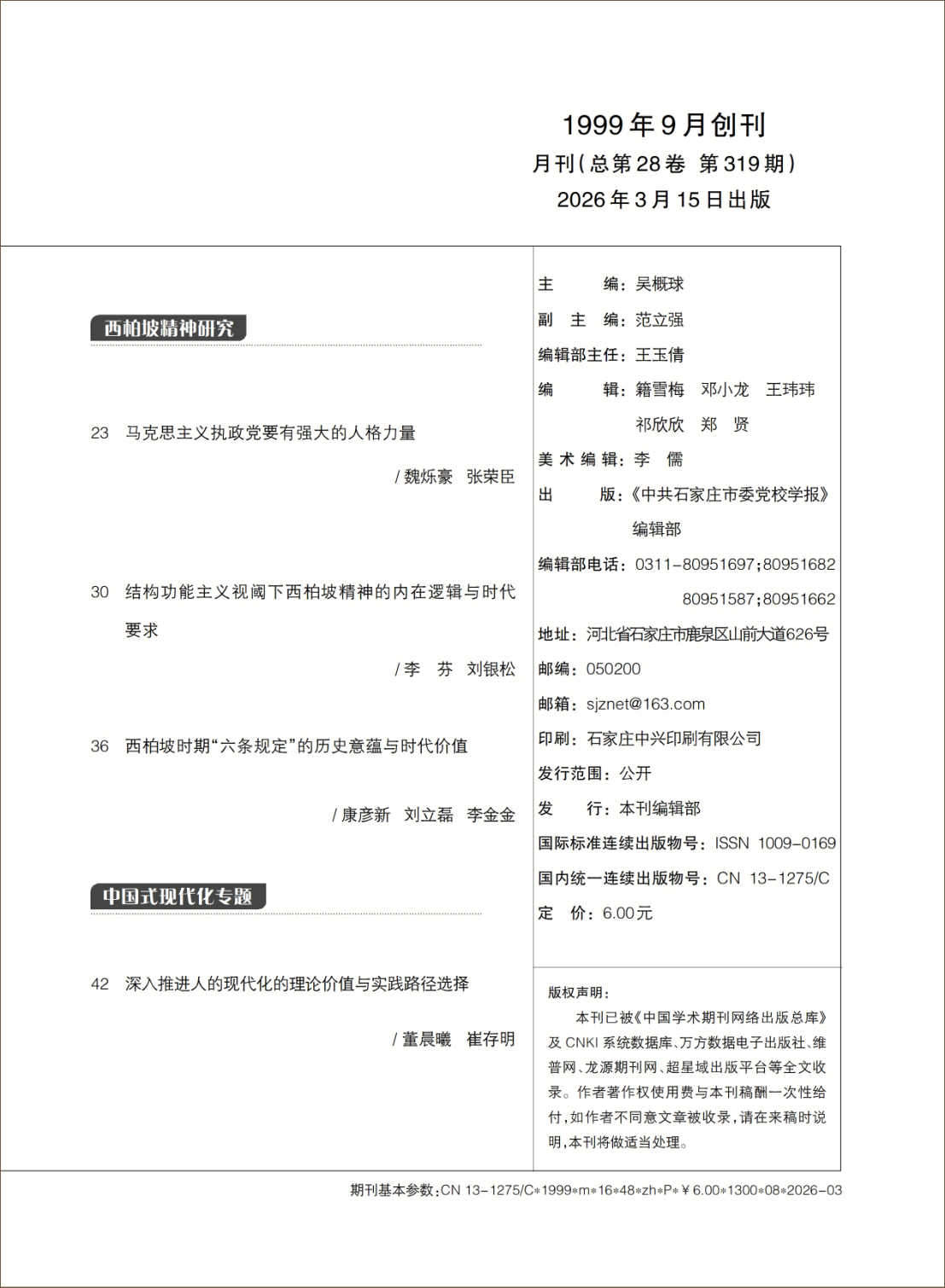 《中共石家庄市委党校学报》2026年(28卷)第3期目录