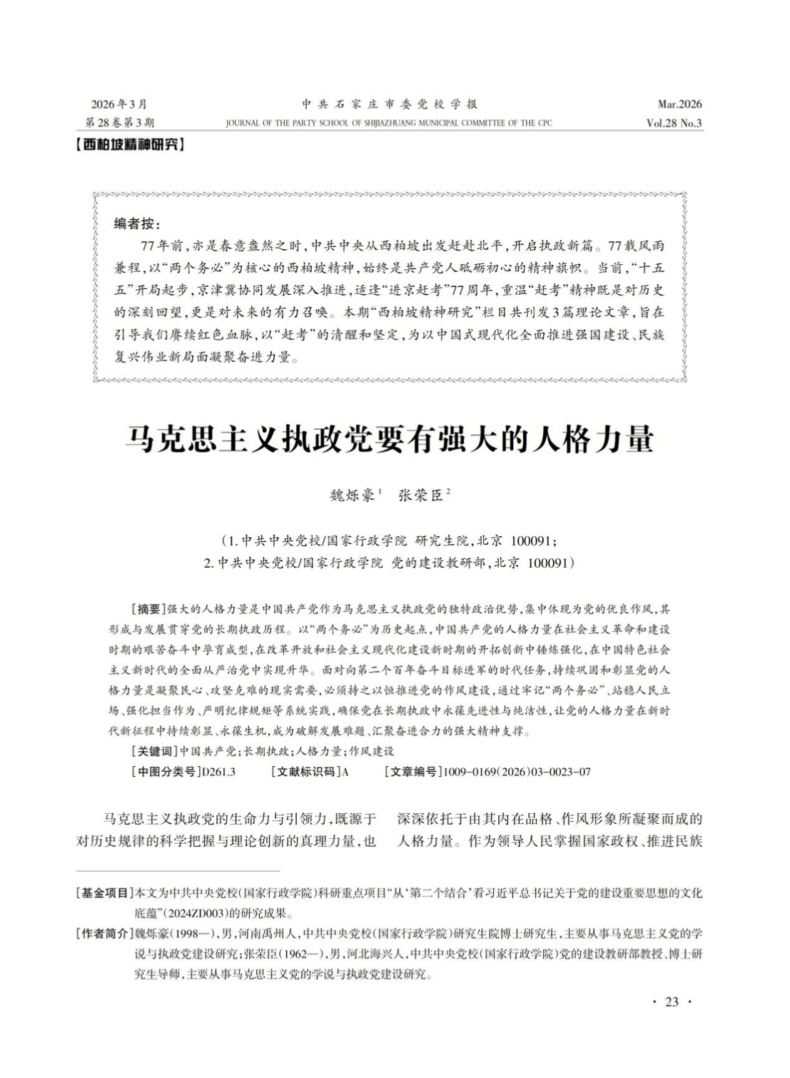 《中共石家庄市委党校学报》2026年(28卷)第2期目录