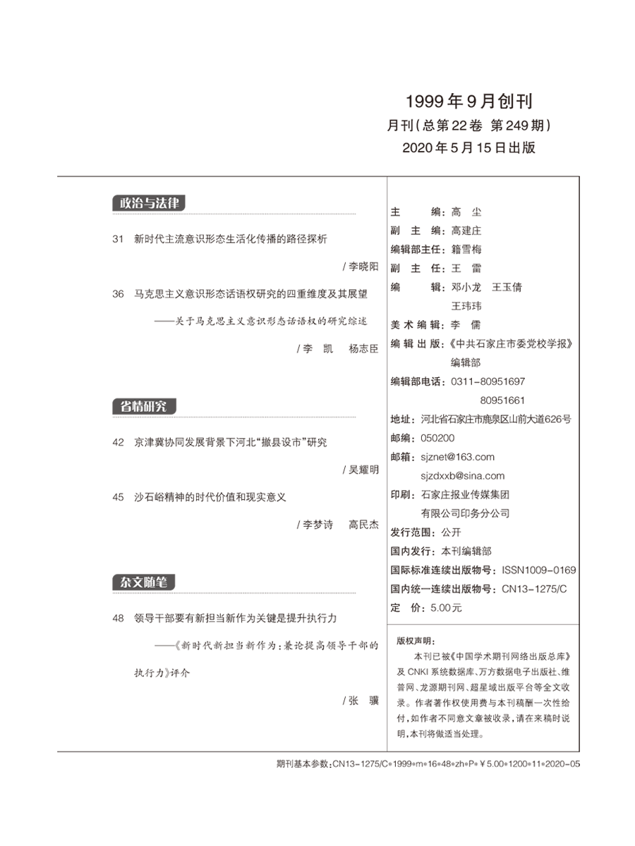 《中共石家庄市委党校学报》2026年(28卷)第3期目录